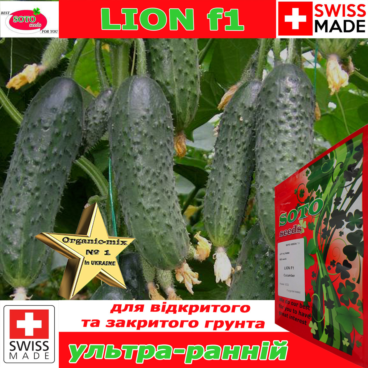 Огірок LiОН F1/LION F1 — гібрид ультраранного пучкового огірка від селекційної компанії SOTO Seeds (Швейцарія). Призначений для вирощування як у теплицях, так і у відкритому ґрунті на огірковій сітці.